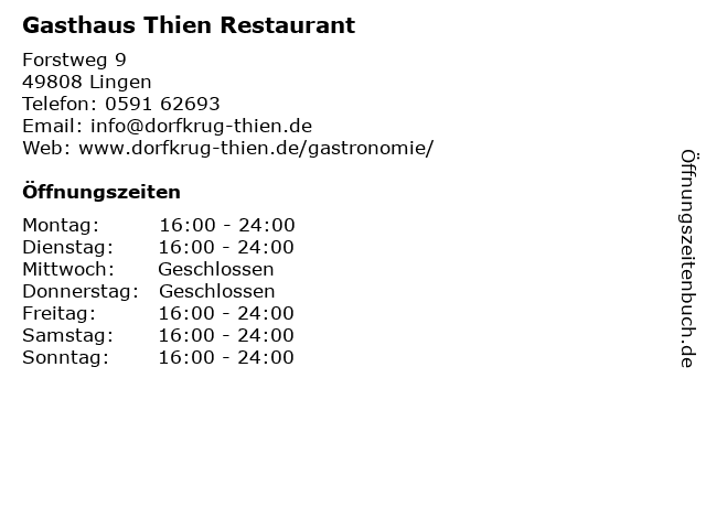 | Öffnungszeiten Gasthaus Thien Restaurant in Lingen anzeigen | |
