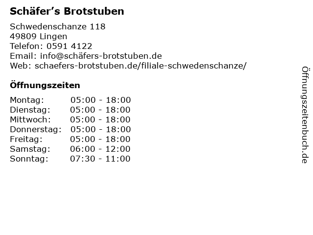 Öffnungszeiten Schäfer’s Brotstuben in Lingen anzeigen | |