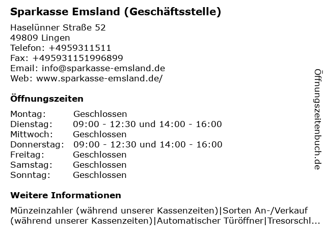 Branchen & Suchbegriffe zu Sparkasse Emsland (SB-Geschäftsstelle):emsland, geschäftsstelle, sb, sparkasse |