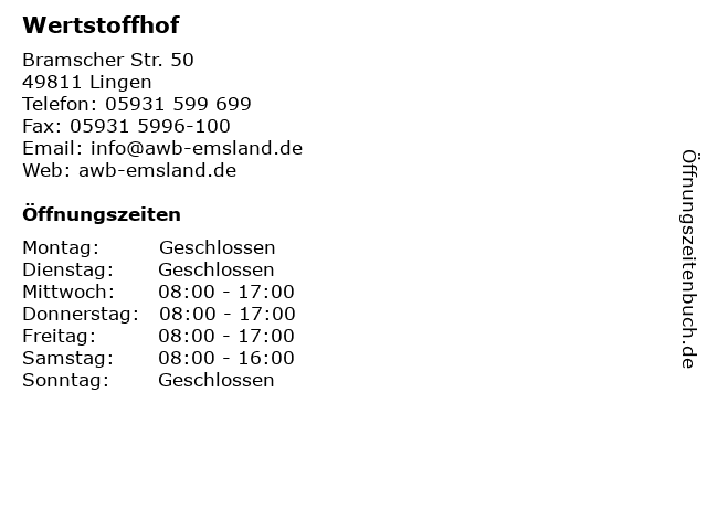 | Öffnungszeiten Wertstoffhof in Lingen anzeigen | |
