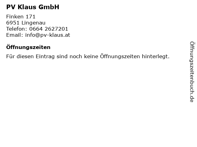 | Öffnungszeiten PV Klaus GmbH in Lingenau anzeigen | |