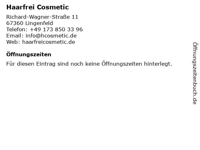 | Öffnungszeiten Haarfrei Cosmetic in Lingenfeld anzeigen | |