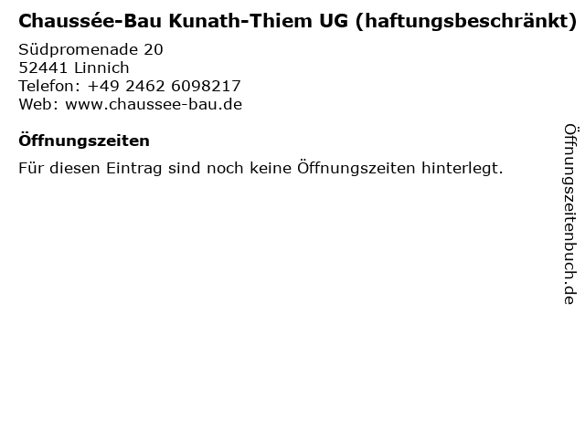 | Chaussée-Bau Kunath-Thiem UG (haftungsbeschränkt) anrufen | |