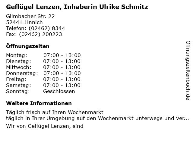 Branchen & Suchbegriffe zu Geflügel Lenzen, Inhaberin Ulrike Schmitz:enten, geflügel, geflügelspezialitäten, hähnchen, inhaberin, putenfleisch, schmitz, suppenhühner, ulrike, wildspezialitäten |