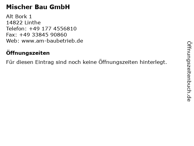| Öffnungszeiten Mischer Bau GmbH in Linthe anzeigen | |