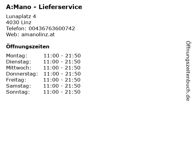 Öffnungszeiten A:Mano - Lieferservice in Linz anzeigen | |