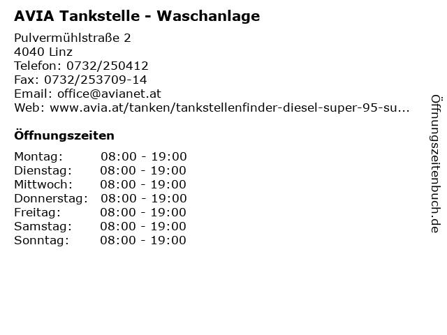 | Öffnungszeiten AVIA Tankstelle - Waschanlage in Linz anzeigen | |