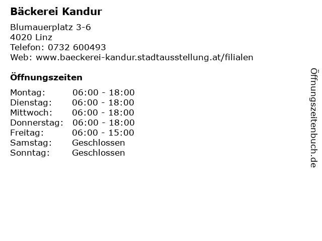 | Öffnungszeiten Bäckerei Kandur in Linz anzeigen | |