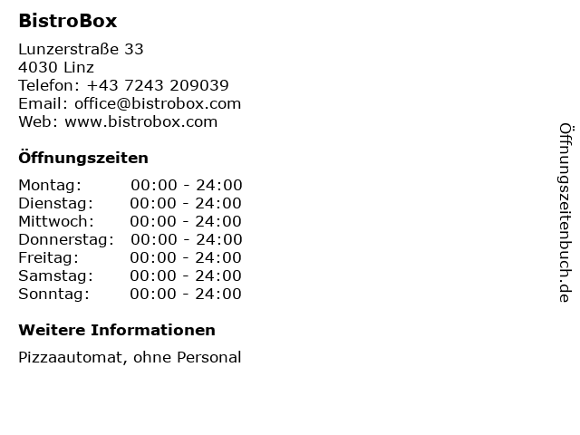 BistroBox in Linz | Telefonnummer, Öffnungszeiten und Adresse