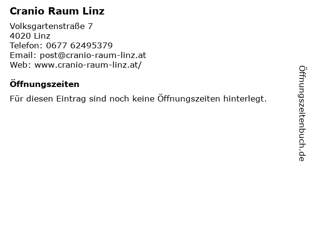 | Öffnungszeiten Cranio Raum Linz in Linz anzeigen | |
