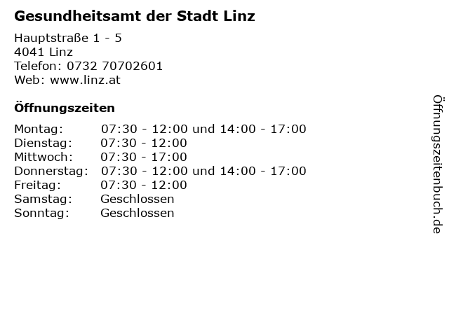 | Öffnungszeiten Gesundheitsamt der Stadt Linz in Linz anzeigen | |