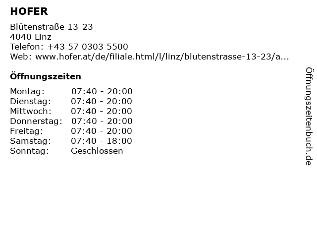 HOFER in Linz | Telefonnummer, Öffnungszeiten und Adresse