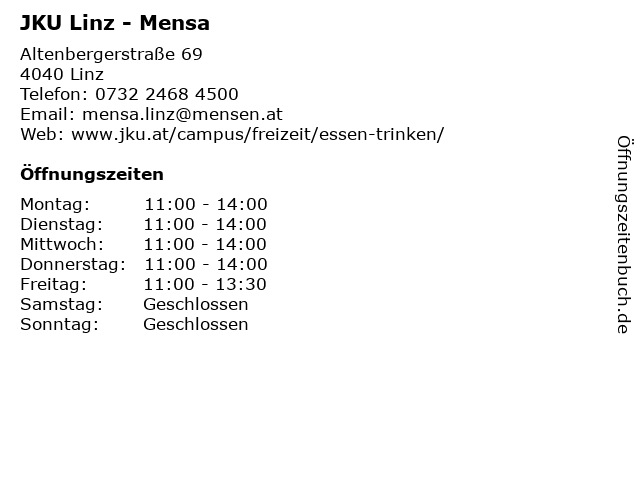 | Öffnungszeiten JKU Linz - Mensa in Linz anzeigen | |