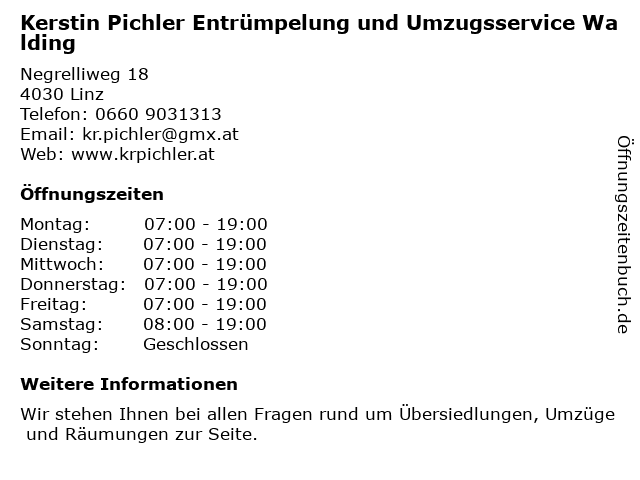 Branchen & Suchbegriffe zu Kerstin Pichler Entrümpelung und Umzugsservice Walding:entrümpelung, kerstin, pichler, self-storage-anbieter, spediteurunternehmen, umzugsservice, walding |