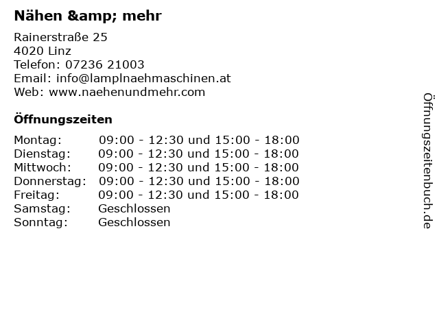 | Öffnungszeiten Nähen & mehr in Linz anzeigen | |