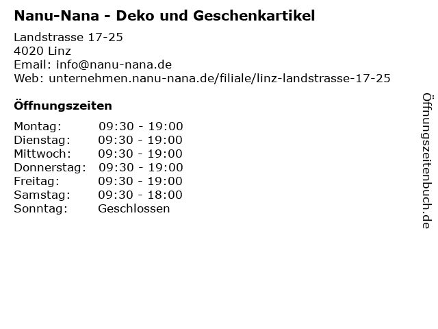 | Öffnungszeiten Nanu-Nana - Deko und Geschenkartikel in Linz anzeigen | |