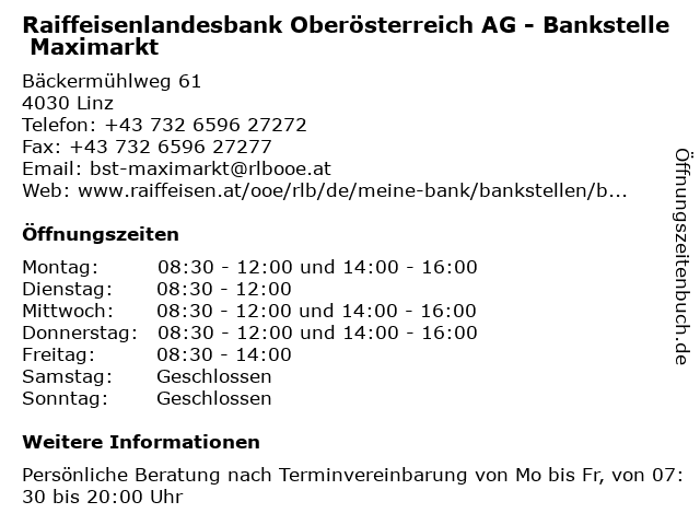 Branchen & Suchbegriffe zu Raiffeisenlandesbank Oberösterreich AG - Bankstelle Maximarkt:abheben, aktien, bankstelle, beratung, devisen, finanzen, geld wechseln, geldautomat, maximarkt, oberösterreich, raiffeisen, raiffeisenlandesbank, sparen, vermögen, vorsorge |