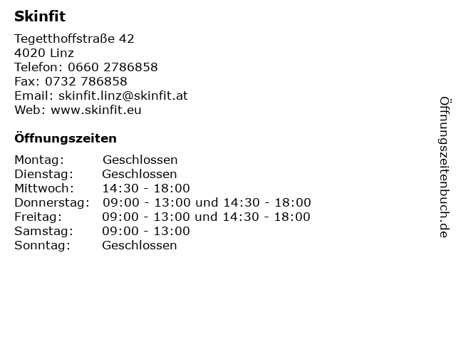 | Öffnungszeiten Skinfit in Linz anzeigen | |