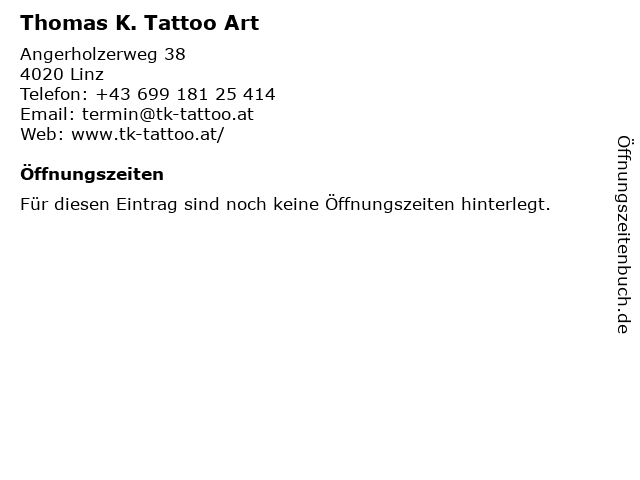| Öffnungszeiten Thomas K. Tattoo Art in Linz anzeigen | |
