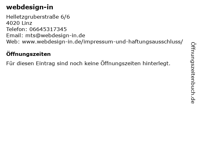 | Öffnungszeiten webdesign-in in Linz anzeigen | |