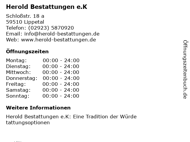 | Öffnungszeiten Herold Bestattungen e.K in Lippetal anzeigen | |