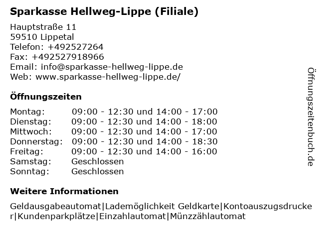 Öffnungszeiten Sparkasse Hellweg-Lippe (SB-Filiale)