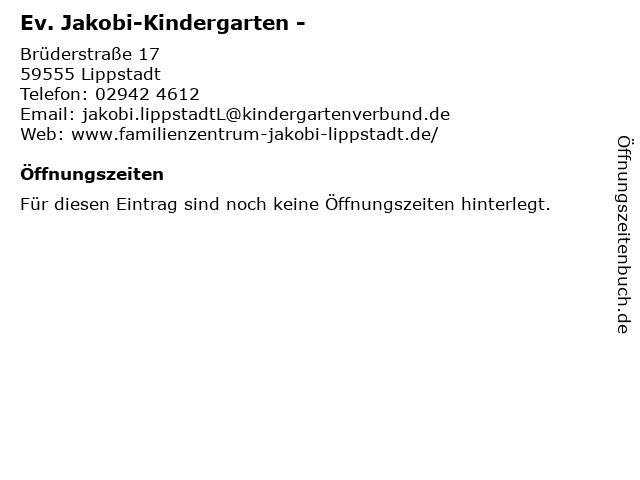 | Öffnungszeiten Ev. Jakobi-Kindergarten - in Lippstadt anzeigen | |