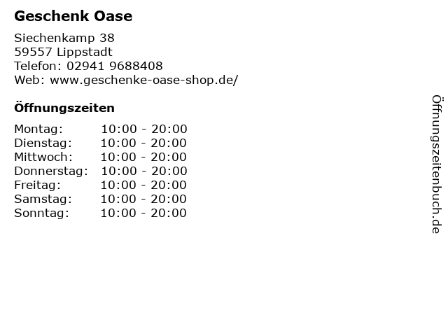 | Adresse Geschenk Oase in Lippstadt anzeigen |