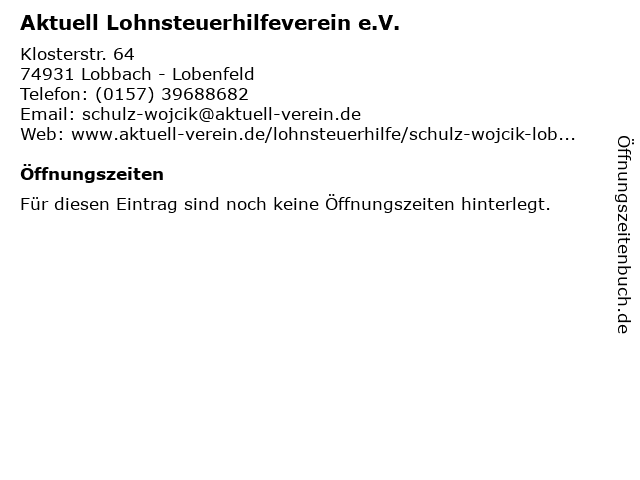 | Aktuell Lohnsteuerhilfeverein e.V. anrufen | |