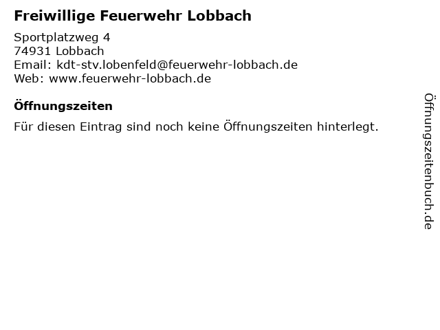 | Öffnungszeiten Freiwillige Feuerwehr Lobbach in Lobbach anzeigen | |