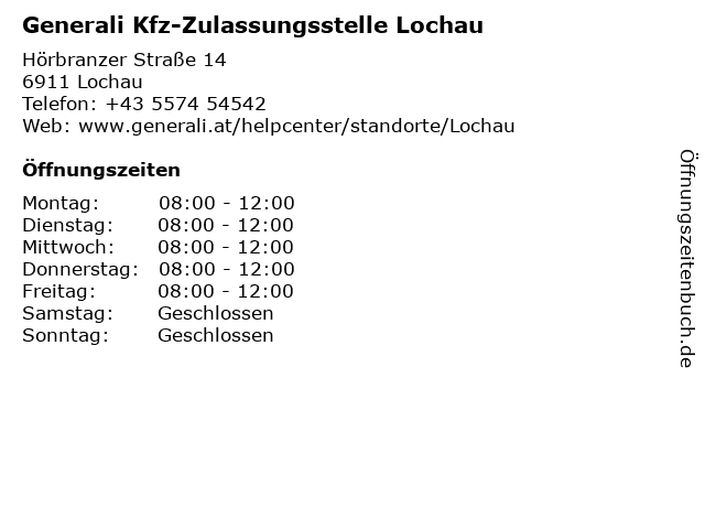 Branchen & Suchbegriffe zu Generali Kfz-Zulassungsstelle Lochau:generali, kfz, lochau, zulassungsstelle |