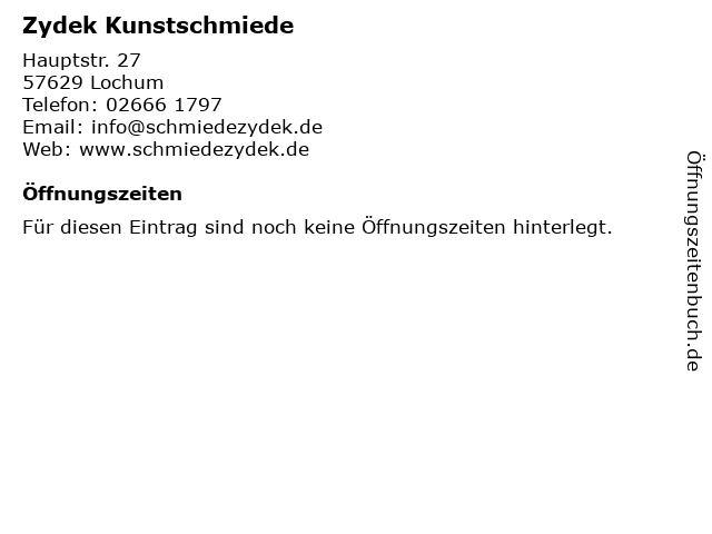 | Öffnungszeiten Zydek Kunstschmiede in Lochum anzeigen | |