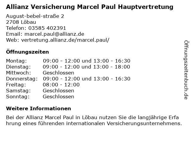 Branchen & Suchbegriffe zu Allianz Versicherung Marcel Paul Hauptvertretung:allianz, altersvorsorge, autoversicherung, berufshaftpflichtversicherung, berufsunfähigkeitsversicherung, gebäude- und hausratsversicherung, gewerbeversicherung, hauptvertretung, lebensversicherung, marcel, paul, pflegeversicherung, versicherung |