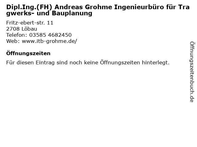| Dipl.Ing.(FH) Andreas Grohme Ingenieurbüro für Tragwerks- und Bauplanung anrufen | |