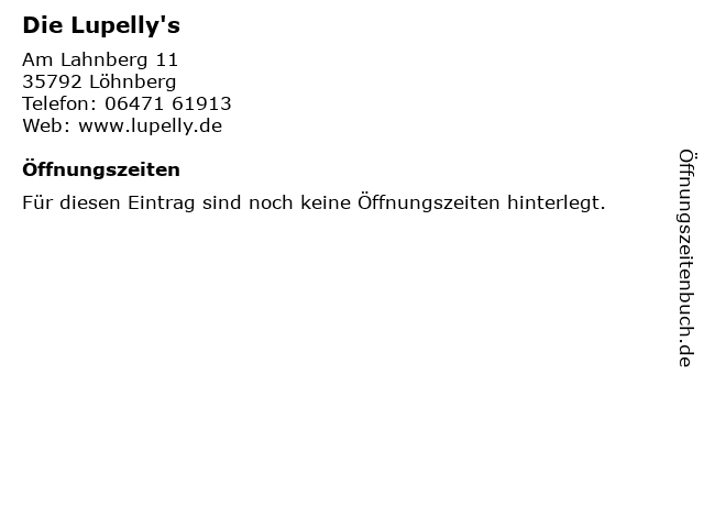 | Öffnungszeiten Die Lupelly's in Löhnberg anzeigen | |