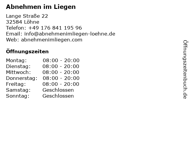 | Öffnungszeiten Abnehmen im Liegen in Löhne anzeigen | |