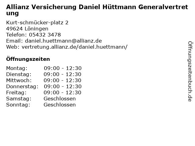 2 Allianz Versicherung Thomas Plaggenborg-Schölzel Generalvertretung (Entfernung: 9,70 km) Kirchstraße 14, 49688 Lastrup 3 Allianz Versicherung Moormann und Tietje OHG Generalvertretung (Entfernung: 12,30 km) Lange Straße 59, 49632 Essen/Oldenburg 5 Allianz Versicherung Thele Burkhard und Daniel Generalvertretung (Entfernung: 14,19 km) Hauptstraße 3, 49757 Werlte 6 Thien Bau- und Möbeltischlerei Industriezulieferer OHG, Daniel Kröger, Hans-Hermann (Entfernung: 15,54 km) Am Zirkel 26, 49757 Werlte |