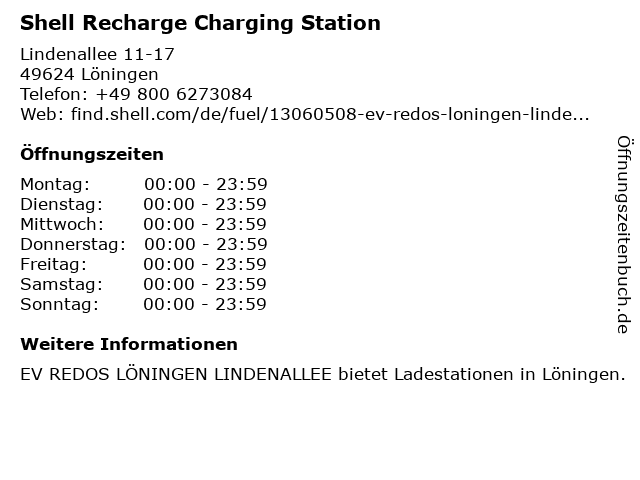 Shell Recharge Charging Station in Löningen: Telefonnummer, Öffnungszeiten und Adresse