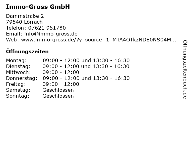 | Öffnungszeiten Immo-Gross GmbH in Lörrach anzeigen | |