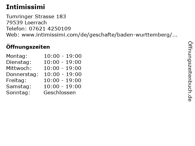 | Öffnungszeiten Intimissimi in Loerrach anzeigen | |