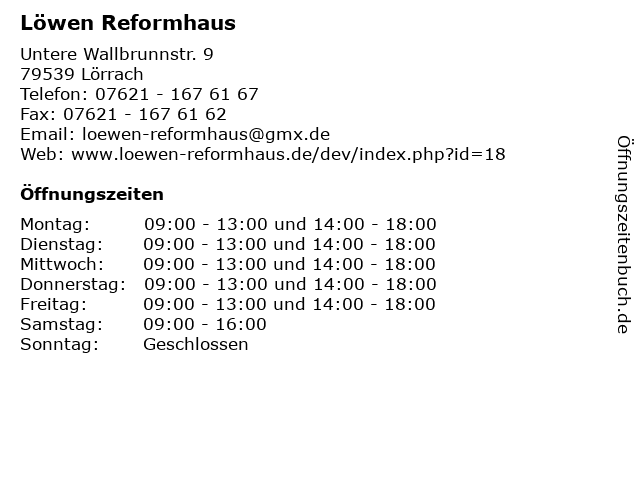 | Öffnungszeiten Löwen Reformhaus in Lörrach anzeigen | |