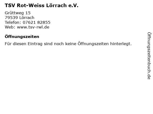 | Öffnungszeiten TSV Rot-Weiss Lörrach e.V. in Lörrach anzeigen | |