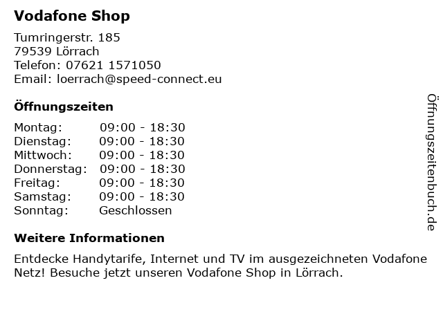 | Öffnungszeiten Vodafone Shop in Lörrach anzeigen | |
