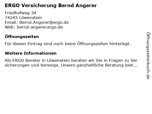 | Öffnungszeiten ERGO Versicherung Bernd Angerer in Löwenstein anzeigen | |
