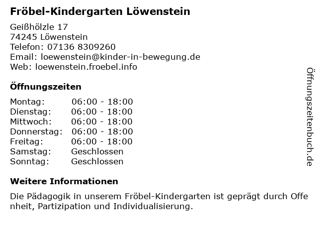 Branchen & Suchbegriffe zu Fröbel-Kindergarten Löwenstein:fröbel, kindergarten, kindertagesstätte, vorschule |