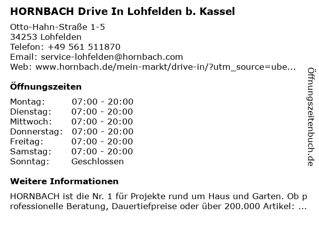 2 HORNBACH Gartencenter Lohfelden b. Kassel (Entfernung: 0,02 km) Otto-Hahn-Straße 1-5, 34253 Lohfelden 6 |