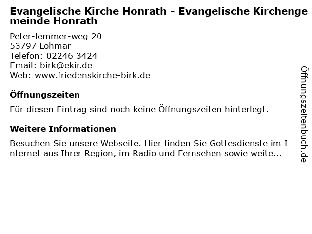 | Evangelische Kirche Honrath - Evangelische Kirchengemeinde Honrath anrufen | |