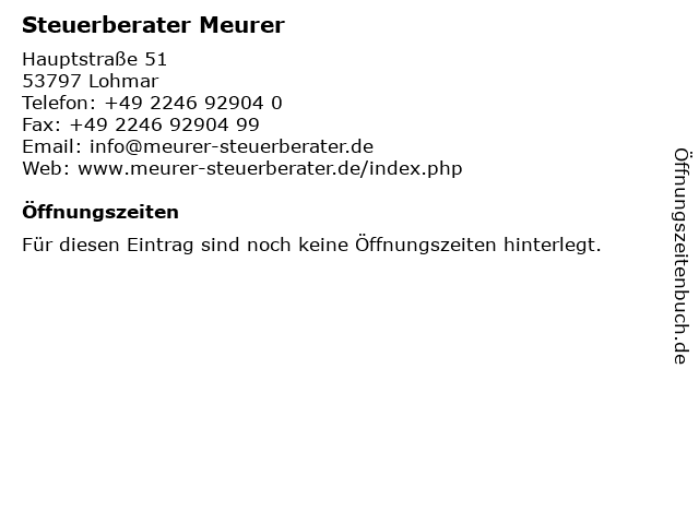 | Öffnungszeiten Steuerberater Meurer in Lohmar anzeigen | |