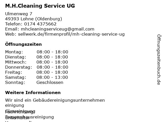 Branchen & Suchbegriffe zu M.H.Cleaning Service UG:m.h.cleaning, service, ug |