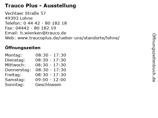 | Öffnungszeiten Trauco Plus - Ausstellung in Lohne anzeigen | |
